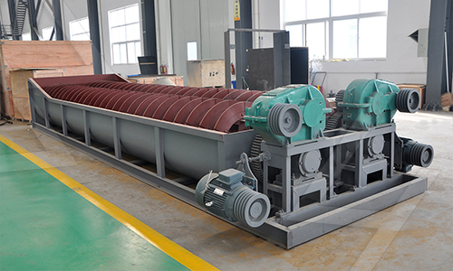 1.螺旋洗砂機主要通過物料根據重量比沉入槽低的有螺旋輸送掃槽排出經過返砂與磨礦機形成閉路再磨,重量輕的顆粒通過槽下方排出從而達到分級效果,并且可以去除砂石表面雜志。