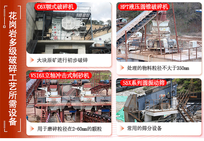 2025-09-20花崗巖作為一種高硬度、高耐磨的天然石材,廣泛應用于建筑裝飾、道路基建、園林景觀等領域。但其莫氏硬度高達 6-7 級,且結構致密、韌性強,傳統加工設備易出現效率低、磨損快、成品質量差等問題。針對花崗巖的特性,一套從破碎、制砂到深加工的全流程適配設備方案是關鍵。