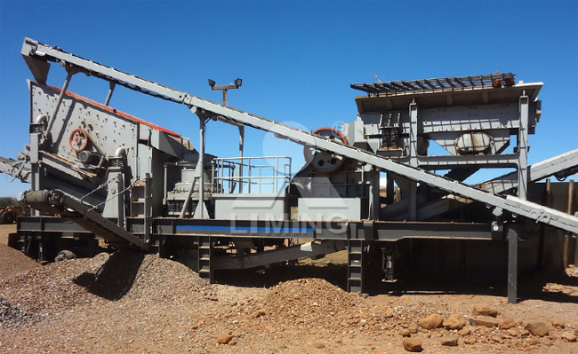4、一體車包含給料機,顎破、圓錐破、振動篩,適合產量在150噸每小時以下的生產線,一臺車就能搞定所有的工作