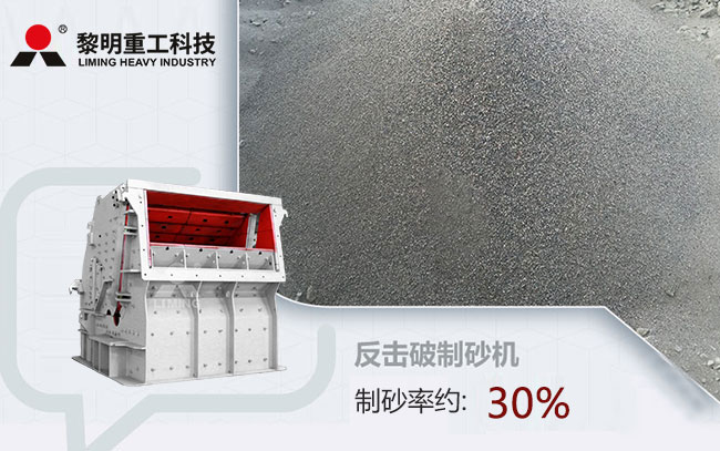 反擊破的制砂率確實是一個非常關鍵的參數,根據目前的生產實驗得到的數據,反擊破的制砂率大概在30%左右,基本可以達到制砂的效果,但是同樣要提醒各位朋友的是,反擊破只適用于軟巖破碎,硬巖會加快設備的耐磨件磨損,增加維護的費用,所以如果朋友們需要制砂,還是推薦專業的制砂機,能找到更有效、成砂率更高的制砂方案。