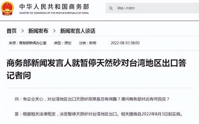 歡迎轉載《商務部稱暫停天然砂對臺灣出口,天然砂是什么?相關措施有什么影響?》,轉載請注明來源:http://m.hk825.com/news/438.html