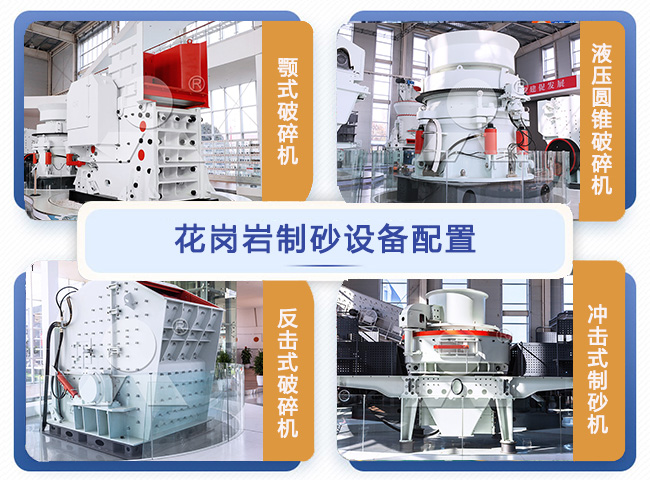 在建筑領域,為了滿足不同需求,需要使用各種不同的花崗巖碎石制沙設備。以下是常見的幾種設備: