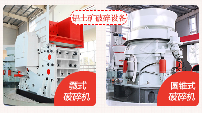 1、破碎設備:鋁土礦大塊物料經破碎機破碎到能進入磨粉機的入料細度(15mm-50mm),一般選用顎式破碎機加圓錐式破碎機