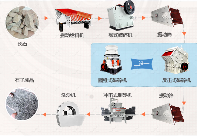 長石破碎工藝流程通常包括以下步驟:預碎、中碎和細碎。